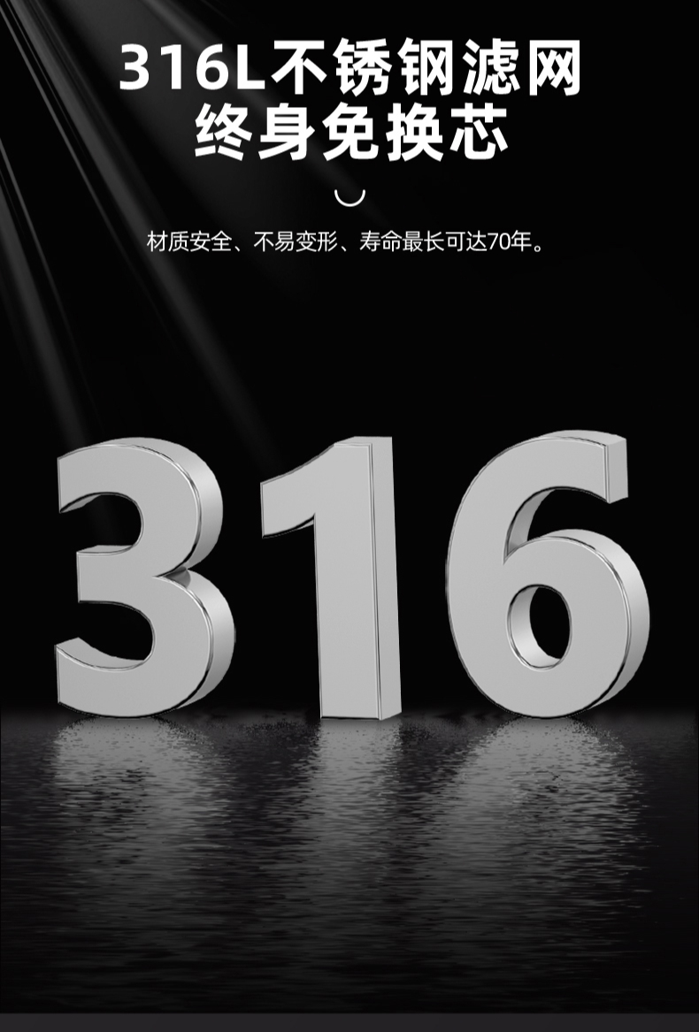 40μm精濾密度,316L不銹鋼濾網,雙刷水動力反沖洗,全息流道銅頭,免換濾芯