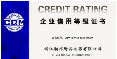 近日,全國(guó)綜合信用評(píng)估中心為浙江潮邦廚具電器有限公司頒發(fā)了企業(yè)信用評(píng)價(jià)AAA級(jí)信用企業(yè)證書(shū),從誠(chéng)信經(jīng)營(yíng)、質(zhì)量服務(wù)信譽(yù)、資信等級(jí)