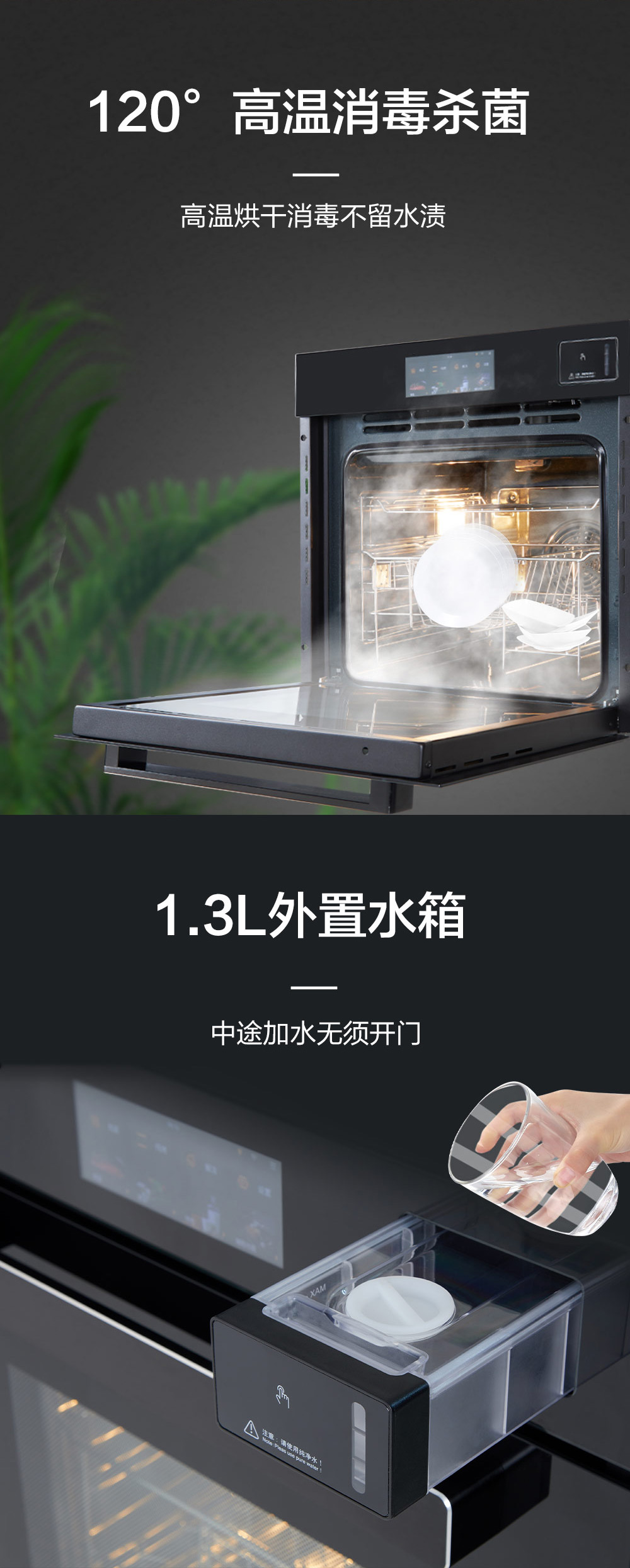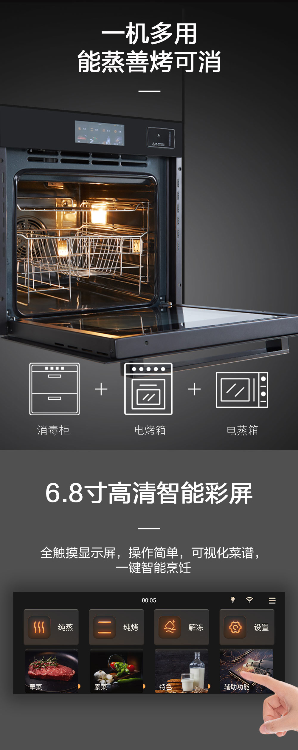 80L大容量;搪瓷內(nèi)膽;高溫消毒;6 8寸觸控彩屏;