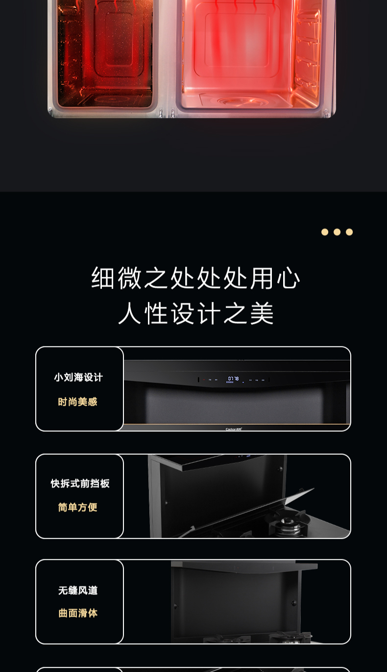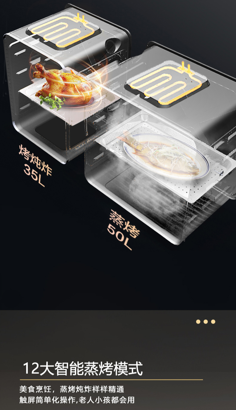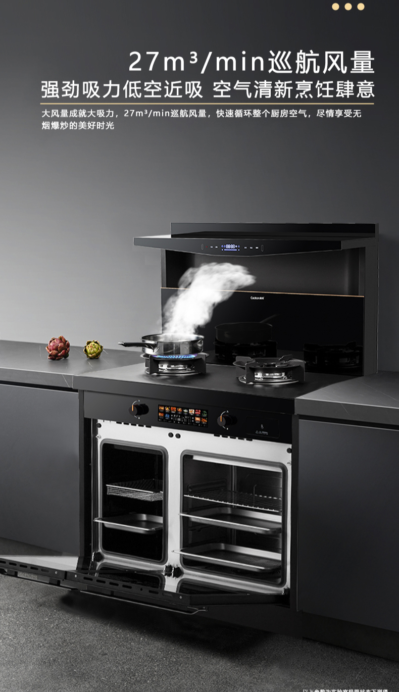 蒸烤同步|1050Pa風(fēng)壓|智能變頻電機(jī)|揮手智控|曲面滑體無(wú)縫風(fēng)道|無(wú)縫瓷膜內(nèi)膽|一鍵熱融清洗|5 0kW大火力| 27m3 min巡航風(fēng)量| 智能預(yù)約功能