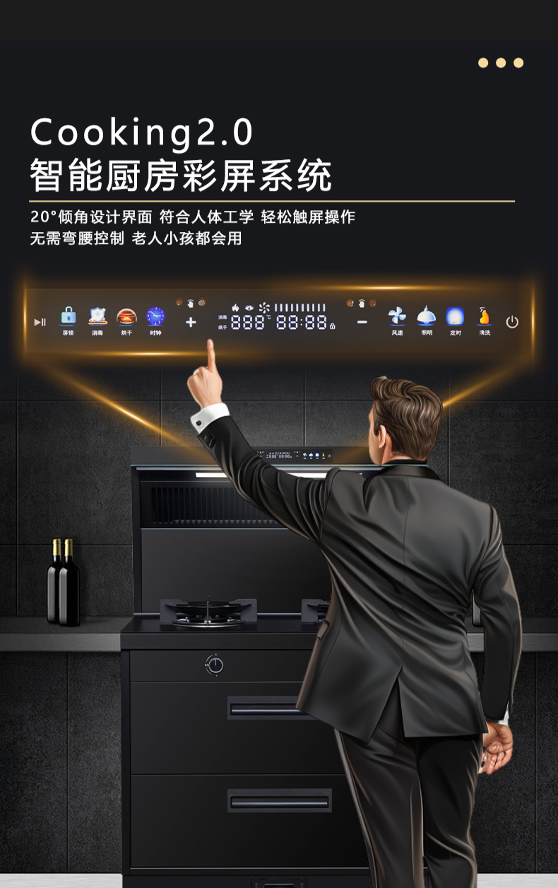 廚房七合一,26方超大巡航風量,雙核驅動變頻控制,5kW大火力,揮手智控,電熱自清潔