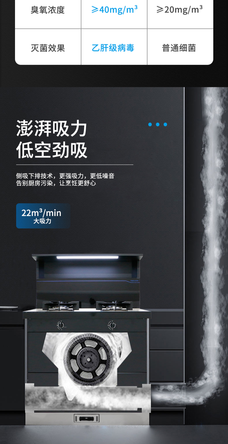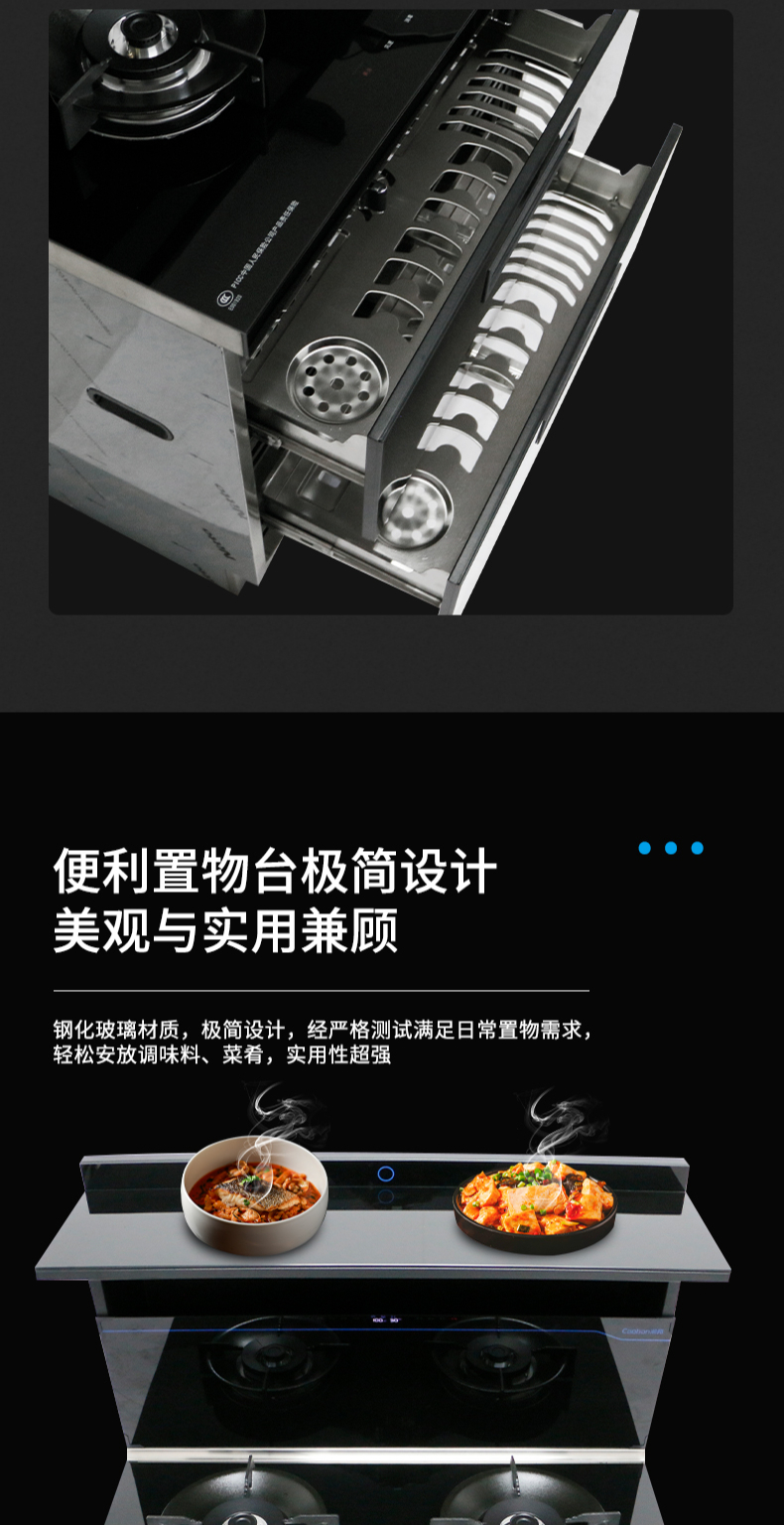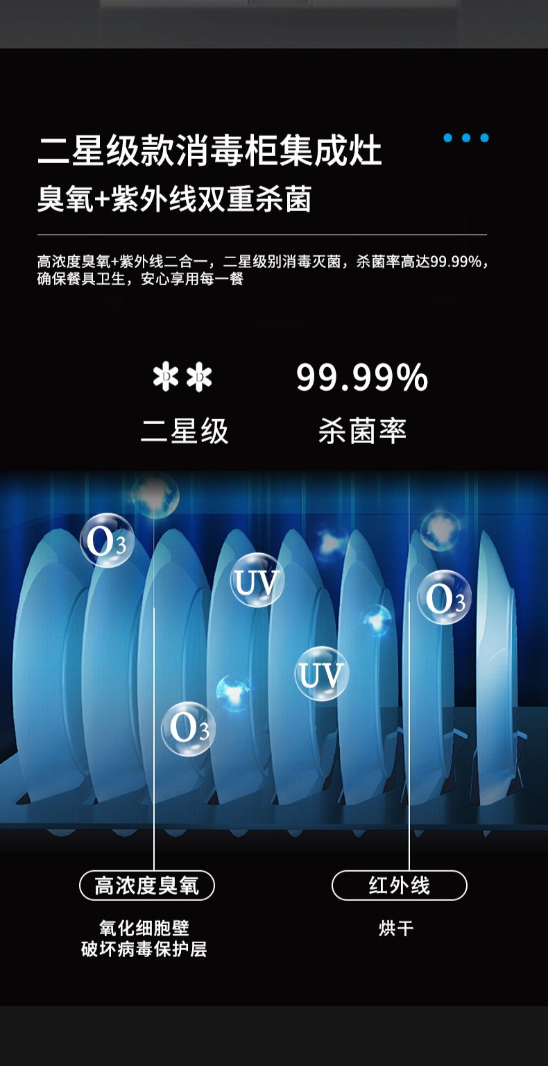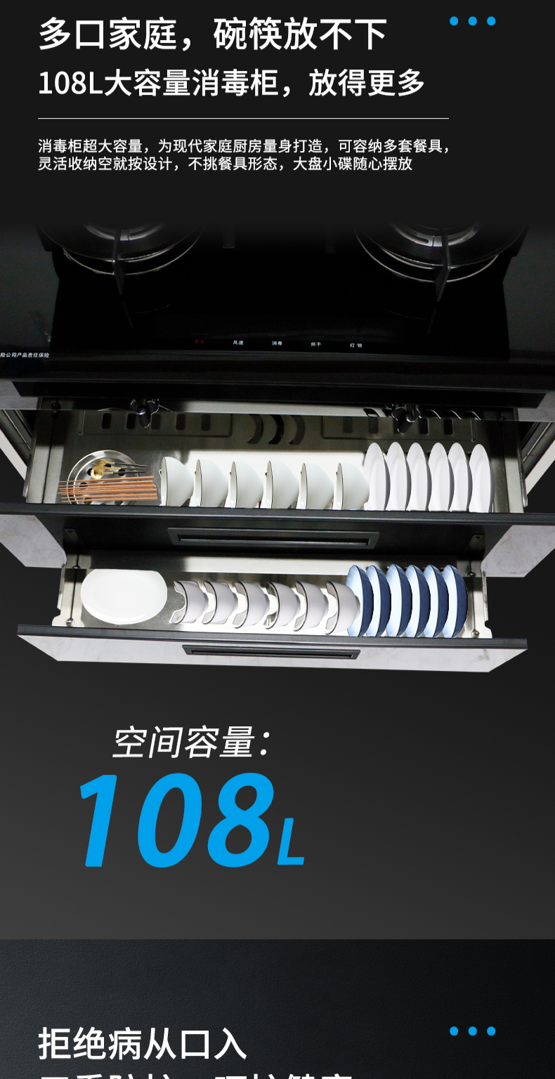 集成科技四合一省空間|108L大容量消毒柜|紫外線+臭氧+高溫三重防護(hù) 伏龍風(fēng)道系統(tǒng)|22m3大吸力|4 8kW火力爆炒|臺(tái)面觸控省時(shí)省力