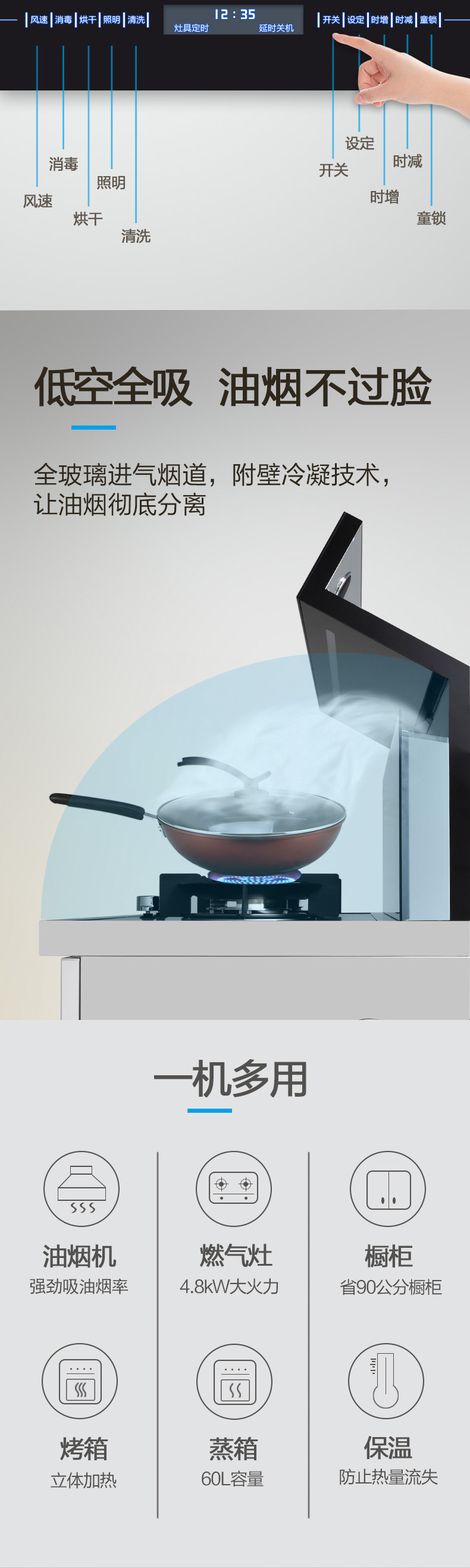 全能大師·蒸烤一體。4 8kW大火力,60%熱效率。