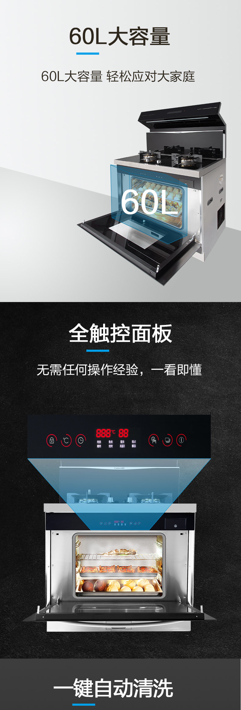 | 蒸烤箱容量: | 60L | 蒸烤箱額定功率: | 2600W |